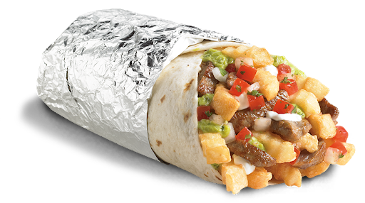 Large Flour Tortilla Filled With Black Beans, Mexican Rice,